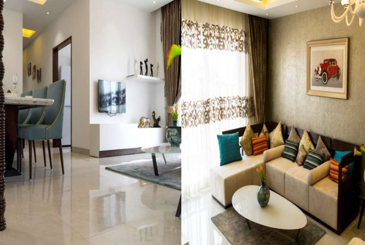 Each 3BHK apartment is designed to maximize natural light and ventilation. You’ll find three well-proportioned bedrooms (with attached bathrooms in many layouts), a generous living and dining area, a modular kitchen, utility or service space, and balconies offering views over landscaped greens or well-planned surroundings. Large windows, open orientation, and cross ventilation ensure a fresh and airy living environment.
