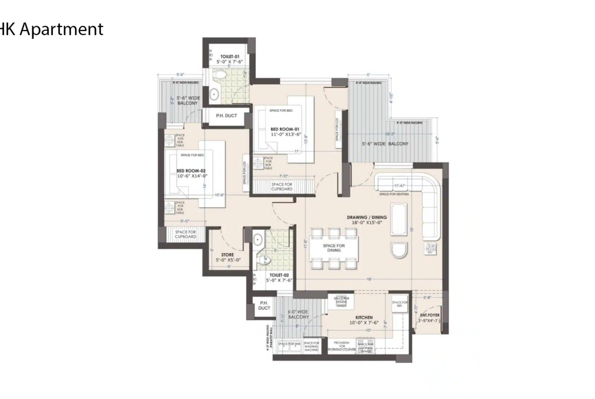 Each 2BHK flat in Escon Primera includes spacious bedrooms, a stylish kitchen, and well-planned bathrooms. The living and dining areas allow plenty of natural light, creating an open and welcoming atmosphere. With high-quality materials and careful craftsmanship, every home reflects lasting beauty and durability.