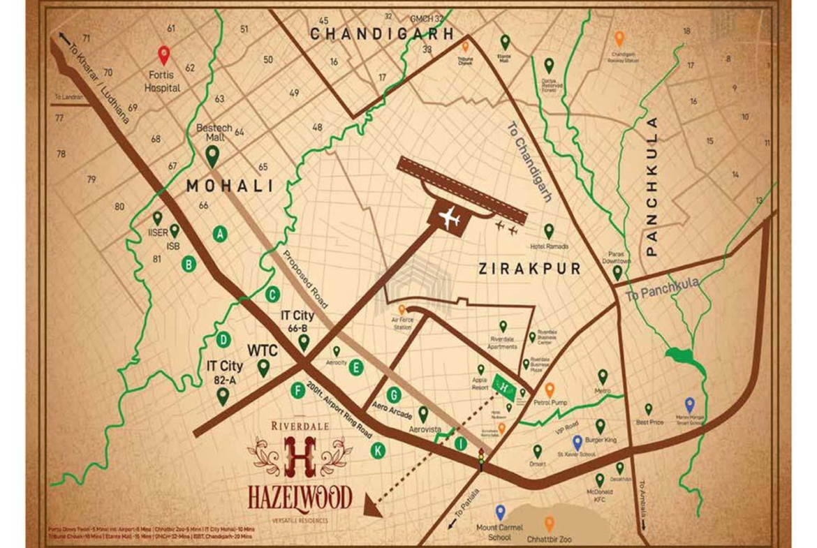 Hazelwood’s location in Zirakpur strengthens its appeal. Residents get easy access to Chandigarh, Mohali, Panchkula, and key corridors. Schools, hospitals, shopping, and transit options are nearby. The location provides balance between peaceful living and urban access.