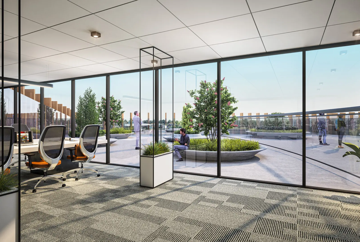 Spread across 1.98 acres, the project is a blend of high-street retail on the ground floor and premium office spaces on the upper levels. The architecture reflects modern aesthetics with a glass façade, open landscapes, and structured layouts that optimize space and functionality.